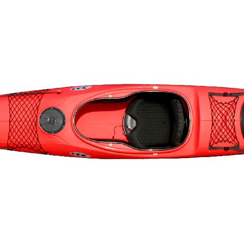 caiacul este utilat si cu doua plase elastice in fata si in spatele utilizatorului pentru fixarea echipamentului.